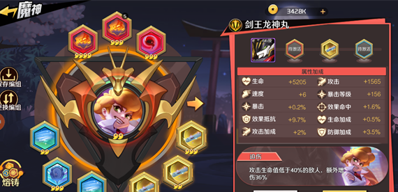 对于剑王龙神丸这种高伤害魔神,可选择破伤虹玉,在场上对生命值较低的敌人有额外增伤可达到斩杀收尾效果。
