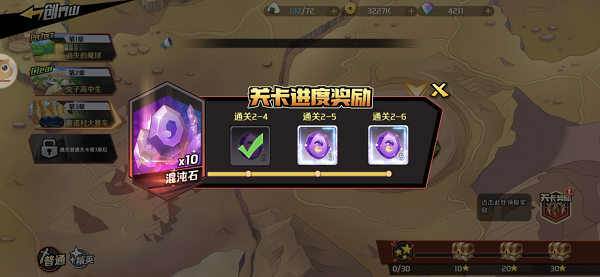 是玩家获得混沌之石的主要方式之一,点击创界山页面的关卡奖励图标即可领取。一般分为三个阶段,每一阶段完成即可获得对应数量的混沌之石,有混沌之石的激励,大家闯关的时候是不是也感觉动力满满了呢?