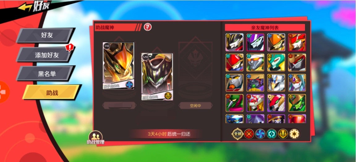 玩家可以通过助战功能和游戏好友一起完成委托,共同获得奖励。注意,好友委托任务的放置队伍必须由玩家和好友的神魔共同组成,在好友委托界面可以选择好友的助阵神魔,也可以放置我方的助阵神魔供好友选择。