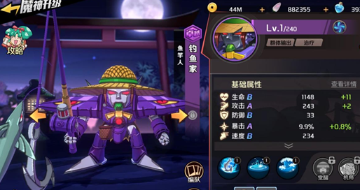 钓鱼家定位为群体输出及治疗,其强势在于被动技能,对敌方进行群体伤害的同时,还会为友方血量最低的魔神回复一定比例的生命。