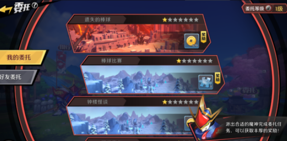 救世主可以通过完成委托任务,获得金币及魔神碎片等材料;积极接取委托任务并完成,还可以提升委托等级。