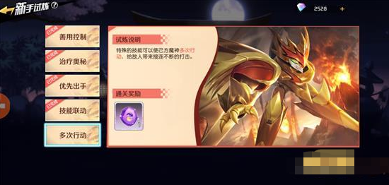 试炼说明:特殊的技能可以使己方魔神多次行动,给敌人带来接连不断的打击。