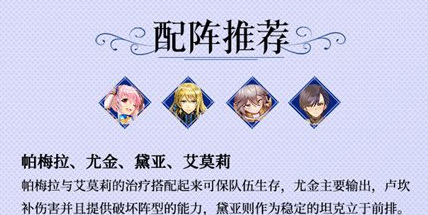 帕梅拉与艾莫莉的治疗搭配起来可保队伍生存,尤金主要输出,卢坎