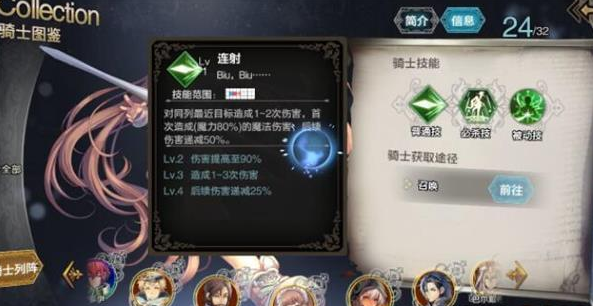 跟其他攻职业骑士一样,攻击同列最近目标,不过她有概率打出第二段,不过也就30%魔法伤害,合起来就是80%魔法伤害攻击也别带太多可能,一般打不出来。
