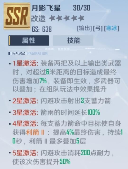 经过改造之后,月影飞星会提升星级并加强,具体的加强内容如下: