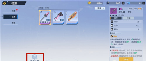 首先在武器主界面中,点击左侧栏位的【仓库】按钮。