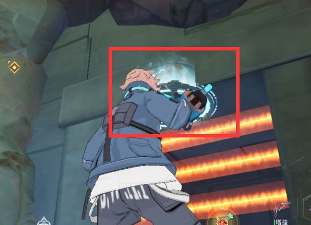 这里有个被红色警戒线拦住的宝箱房,我们使用喷枪吐出的物品,能够阻挡住的这个伤害光线,如图,后退几步喷在这个位置,能够有效的阻挡光线,拿到宝箱
