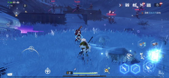 这三个基础操作有什么特别之处吗?那是自然。跳即是跳跃,普通状态下是两段跳跃,在面对悬崖、树木这些高起建筑时,跳跃会变成向上攀爬的技能。而闪避则是下落技能。闪即是闪避,类似位移技能,可以朝前后左右方向位移一段距离。平常赶路状态下,配合方向键使用,可以保持冲刺奔跑,增加移动速度。