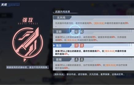 玩家为角色装备至少两把属性一致的武器时,就会触发“共鸣”效果。在武器共鸣状态下,拟态角色会获得破盾、减伤、最终伤害提升等各类增益加成效果。