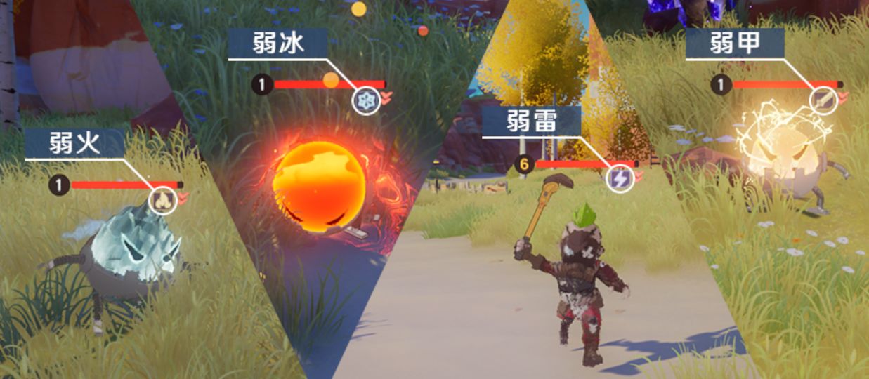 怪物有各自的弱点,使用对应的元素攻击可造成更高的伤害。