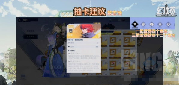 所以微氪及以下意志池想抽可以但是不要花钻石买抽卡道具抽,并且各种送到意志抽卡道具最好留到自己主练的武器毕业意志up的时候再抽。