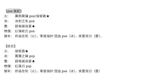 替补: 炽焰左轮(火)、零度指针·回血pve(冰)、疾雷双刃(雷)
