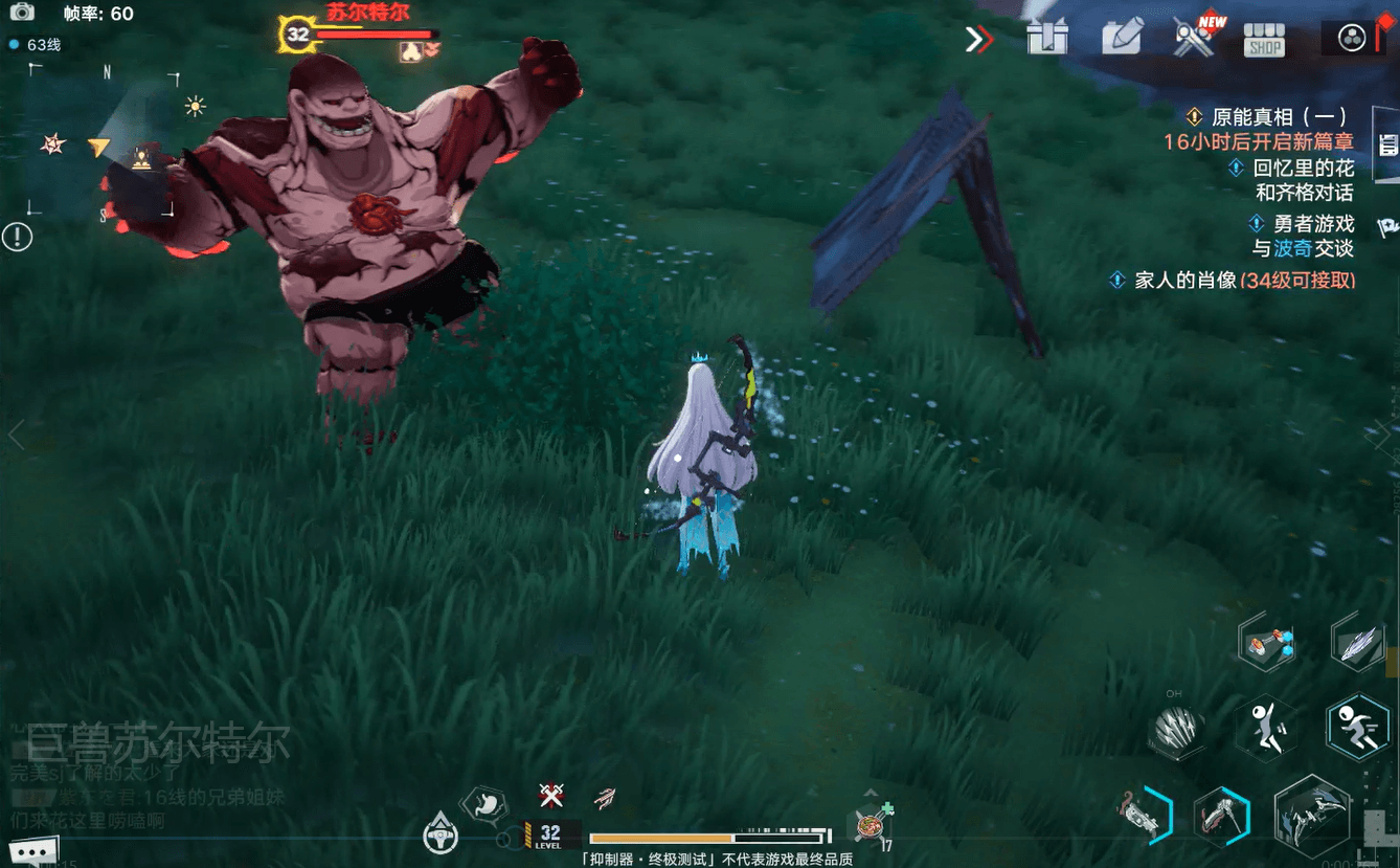 1、巨兽苏尔特尔有护盾,火属性克制,建议玩家使用火属性武器攻击。