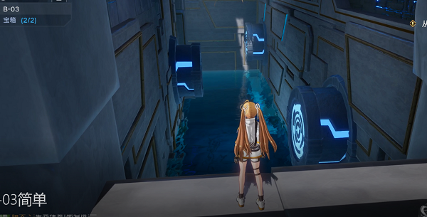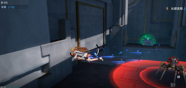 1、第一个宝箱,这里等移动平台到身边蹦上去,转到旁边开启机关,然后跳上移动平台之后开第一个宝箱即可