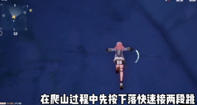 2、其实大家可以通过在爬山过程中先按下落然后快速接两段跳,再按下落继续接两段跳,如此反复就可以不耗费体力值到达山顶。