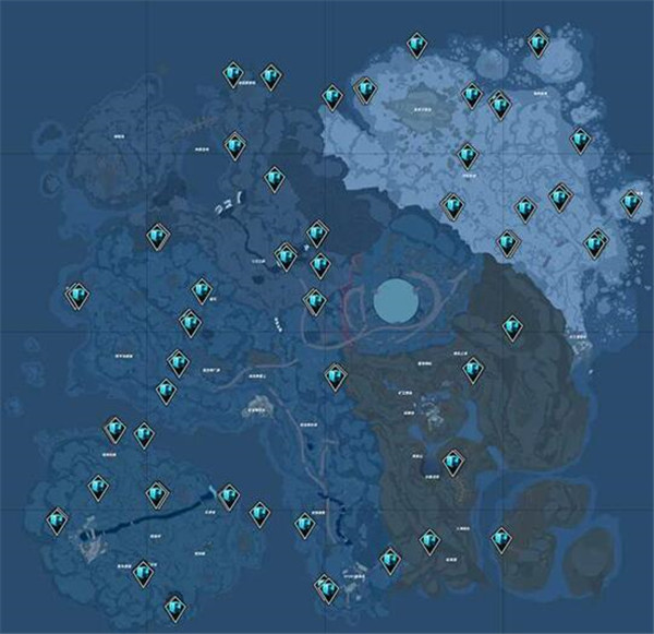 3、以下就是冰元素矿石的分布图了,大家可以对照着图内的标识寻找;