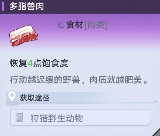 1、直接食用多脂兽肉,可以带给玩家4点饱食度。