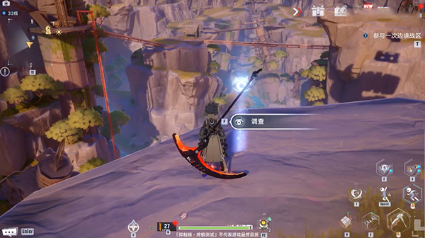传送到克罗恩原能塔折跃门,往西侧飞悬崖边走,最后就能发现调查点了。