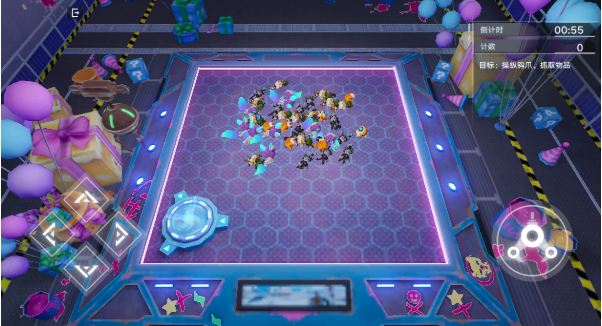 移动抓手地面上会实时显示抓手的落点(这就很贴心,比现实抓娃娃要简单不少),