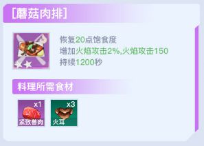 火攻【蘑菇肉排】、冰攻【鲑鱼刺身】、雷攻【雀头薯饼】
