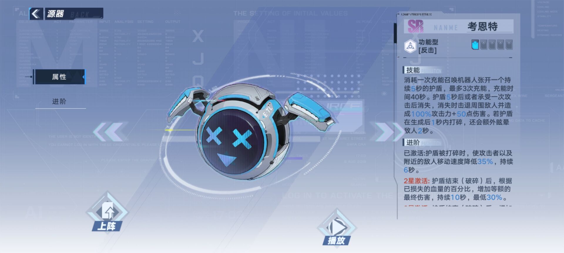 其次我比较推荐一些防御性或者功能型源器,如【考恩特SR】、【原能护盾SSR】、【死亡抑制SSR】,这些源器可以帮助奶妈进入短暂的无敌或者免伤的状态