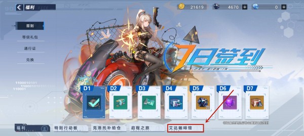 2、来到福利界面之后再点击下方的艾达咖啡馆。