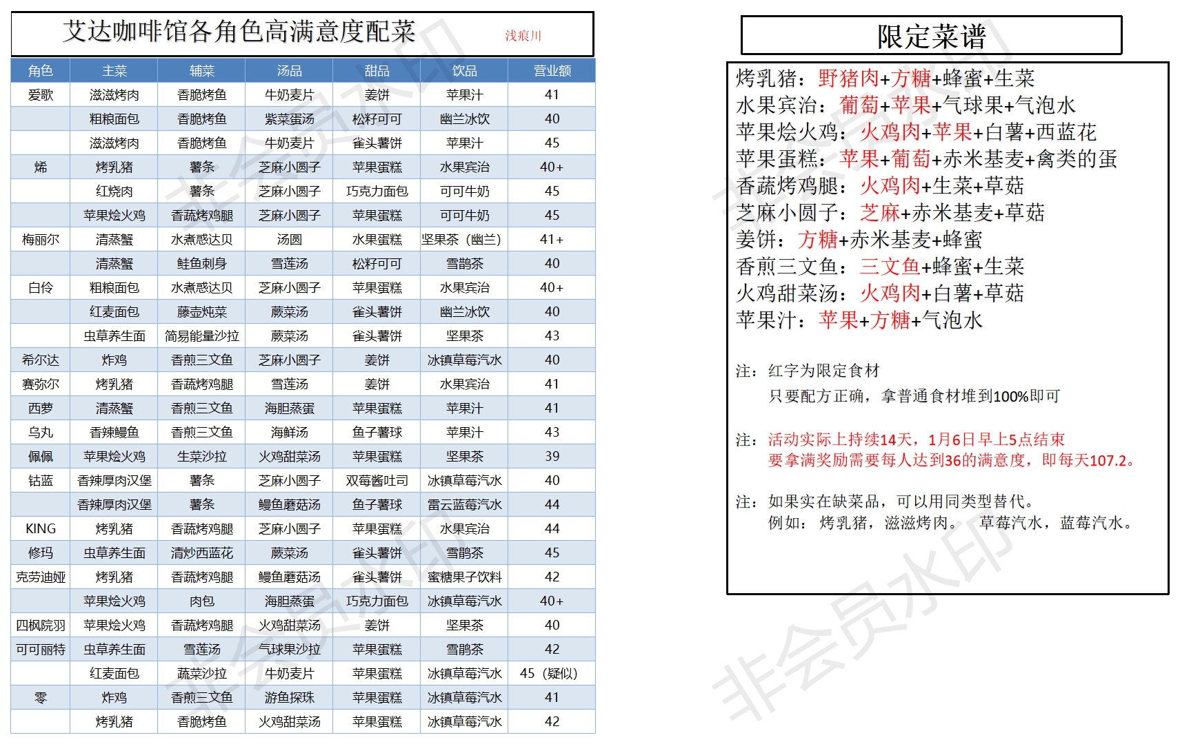 3、而不是每天100。 所以如果之前有落下的满意度,在后续的天数里更要做营业额高的配菜才能拿满奖励。