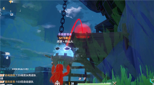 首先把水核体,放到这个石头顶上。然后飞到吃吃花那里,走到下图所示的这个位置