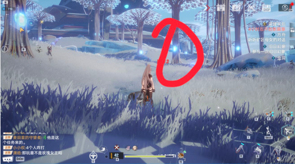 上图这些蓝色的像树的就是原能树,途中圈出来的每棵树都有,正常为发出蓝光,如果原能树是红光就可以靠近与原能树对话,消耗相应的材料修好原能树就可获取一枚黑核(又是新的黑核获取途径,呜呼,上线冲鸭虽然我10页黑核无金....)