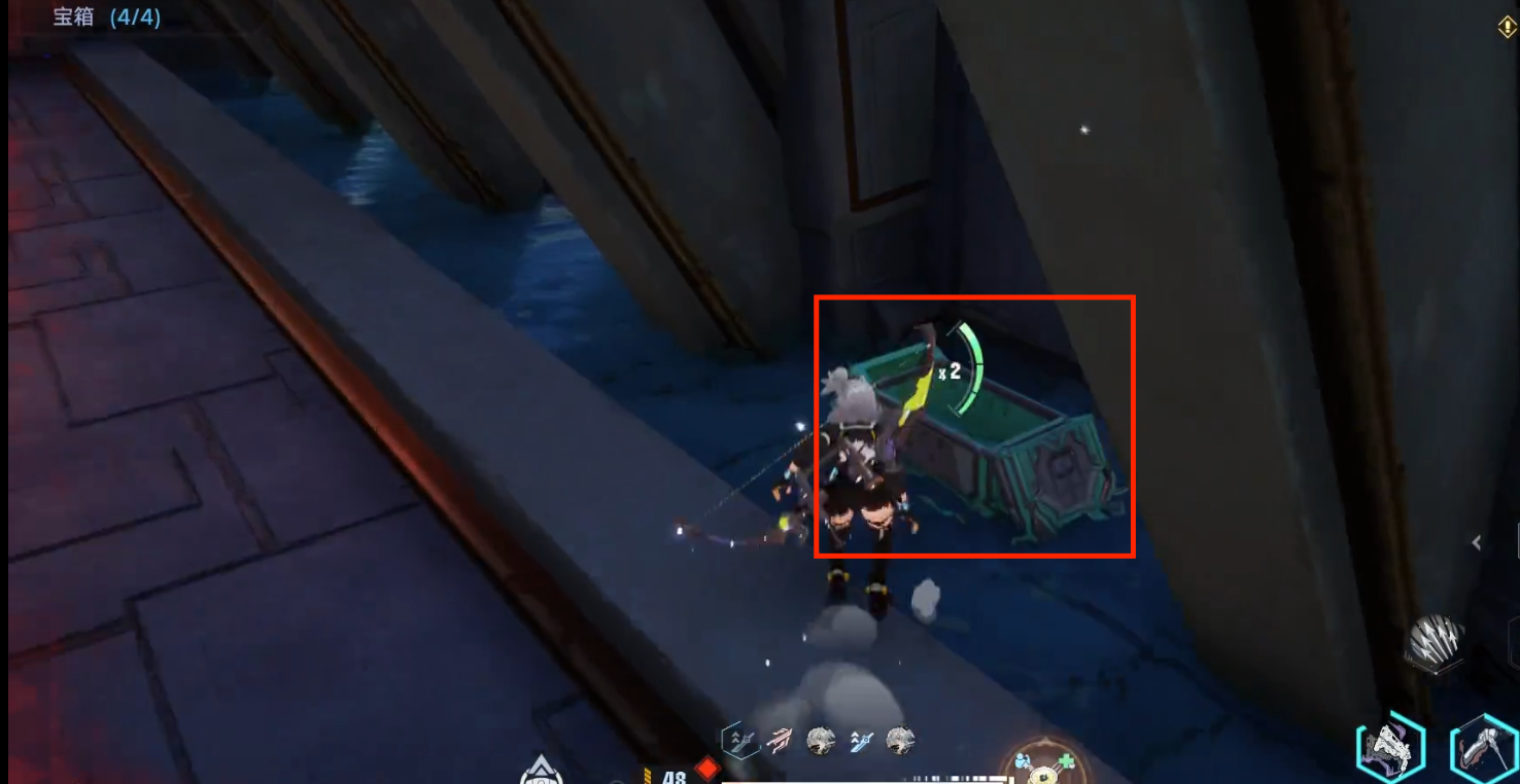 第四个宝箱需要先射击左边的柱子,然后射击左前方,平台左边走就能看到。