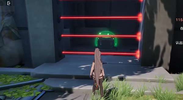 8、第三个房间进口右边的位置可以看到第五个宝箱,使用原能手炮将红线遮住;