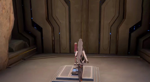 5、之后往前走进入第三个房间,入口的右侧位置有一个小房间,里面放着第四个宝箱,使用原能手炮将红线挡住进去拿第四个宝箱;