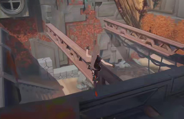 8、拿到机关之后往外面走,扔到左边的圆形机关上;