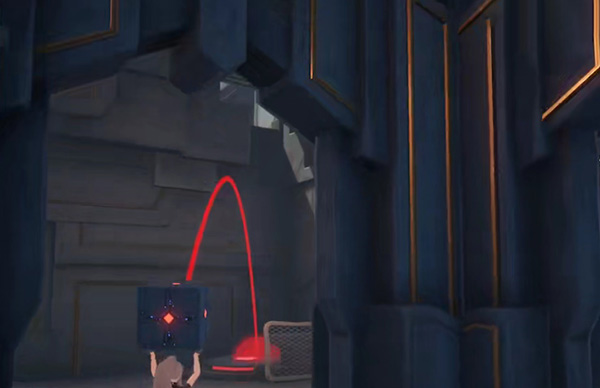 9、然后回去将刚才扔的方块机关举起扔到大厅右侧的机关上,最后房间的大门机会打开;