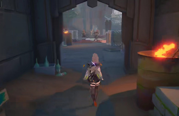 7、然后进入大门,会看到被树枝拦住的门口,使用火属性武器将树枝烧掉,进入;