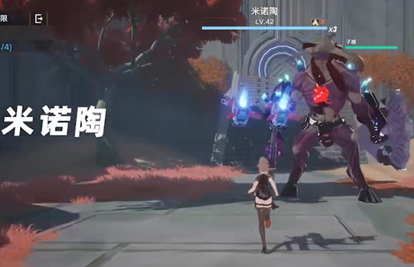 13、拿完宝箱之后回去,往最后的房间走,击败关卡boss【米诺陶】,boss自己会带有护盾,火属性克制,建议玩家们使用黑鸦冥镰武器,既是火属性武器破盾超级厉害,很快就能将boss击败。