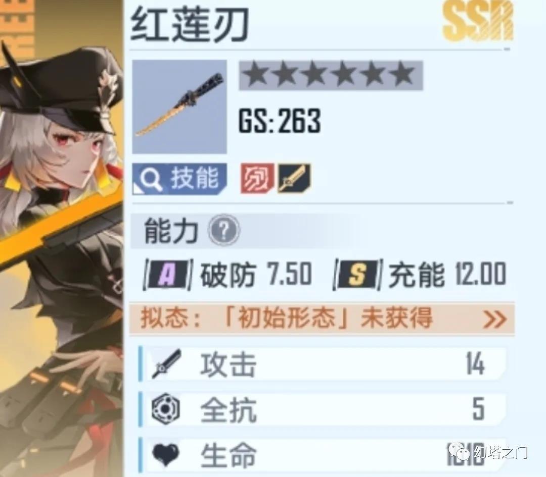 2.红莲刃:破防七点五,充能十二点零 武器伤害。
