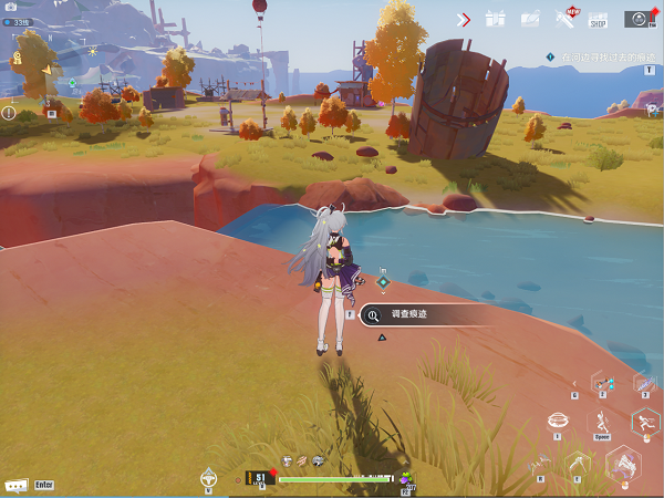 3.这个时候我们时光旅人的故事就正式拉开序幕了,然后继续跟NPC对话,让我们去寻找生日礼物,然后我们来到旁边的河边调查痕迹。