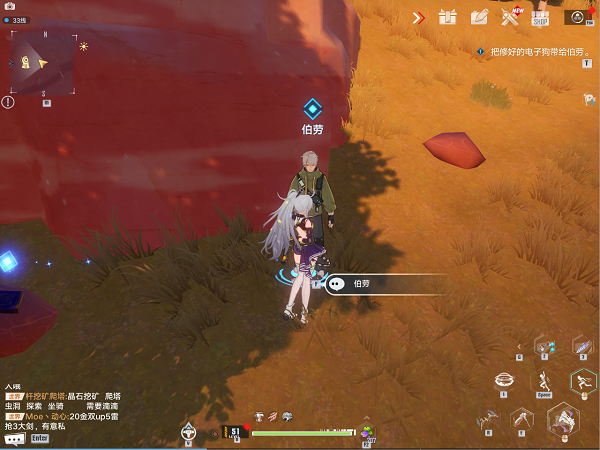 1.首先我们来到星岛原能塔,然后在气球一侧往下跳,在岩石附近可以发现我们的第一个NPC—伯劳