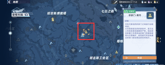 2、在班吉斯原能塔右侧有一个黑市的折跃门,玩家可以直接传送过来,如下图: