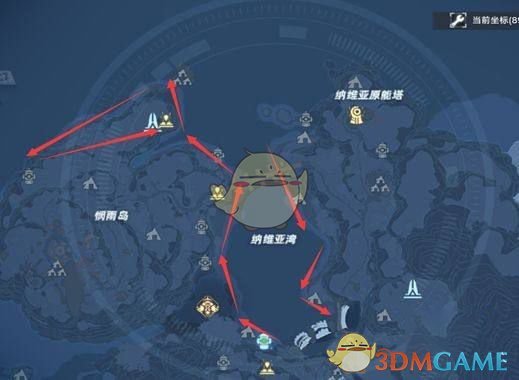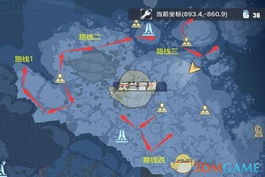 1、雀头薯:雀头薯生长的位置比较的分散,可以按照图中的路线寻找。