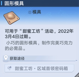 在甜蜜工坊活动期间,在地图中找到区域首领并将其击败即可获得首领密码箱,其中会包括圆形模具。