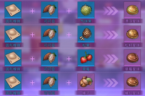 获取到圆形模具之后,加入巧克力食材就可以获得【可可星球】菜谱,加入其他食材还可获得更多巧克力甜品。