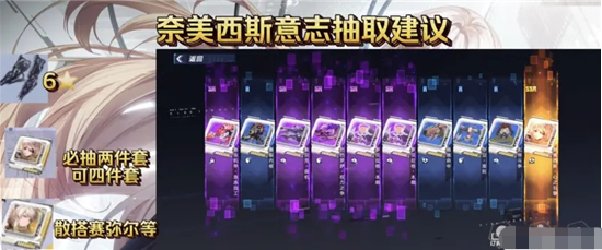 1、不抽启明星或启明星三星以下的玩家,就没必要抽奈美西斯意志了。因为奈美西斯意志是针对有奶的武器的,而除了3星及以上启明星,其他有奶的武器都不是拿来打输出的,用紫意志当奶妈也能混何必抽这套。