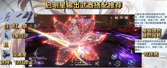 首先就是启明星的武器搭配问题,这一部分up会分为:输出搭配、回血搭配两类进行推荐。