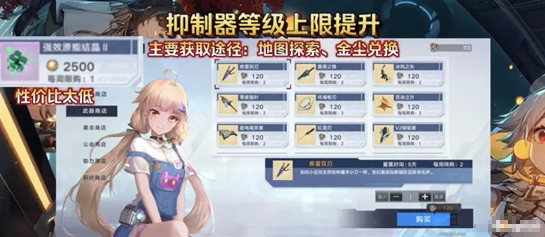而升级抑制器除了需要原来材料,还需要用维拉产出的新型进阶材料,获取途径目前来看只有:通过金尘和探索进度获得,途径还是比较少的,并且金尘换一个需要2500的天价,换得的提升也不大,更多的还是抑制器等级高说话带来的牌面,希望官方能增加些获取途径吧,不然换抑制器进阶材料耗费性价比实在太低。