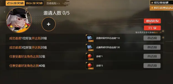 然后是邀请玩家的奖励,最完美的完成方式当然是直接邀请朋友们一起来玩、入坑咯,这样既能完成自己的邀请任务,平时聊天也会有额外的讨论话题了。