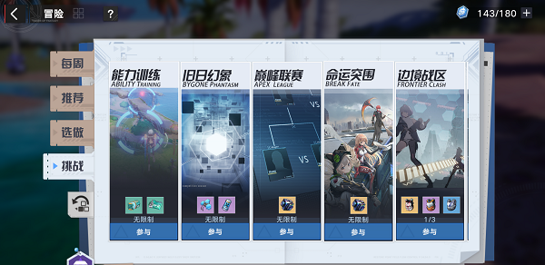 界面右上方【冒险】-【挑战】-【命运突围】。