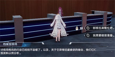1、首先玩家找到档案馆里面的接待,和她进行对话之后,我们就可以领取这个支线任务了;