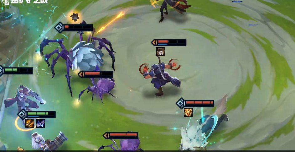 爆炸火花,麦林炮手将一颗炸弹放置到她的当前目标的身上,并在3次攻击后引爆该炸弹造成95/135/215伤害,并伤害附近的敌人。当麦林炮手拥有攻速以后,可以多次释放该技能,打出巨额的伤害。